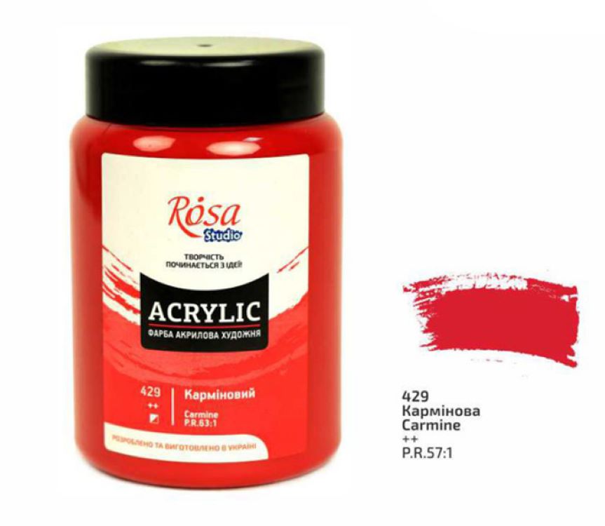 ROSA Studio akrylové farby sú vyvinuté pre umelcov, ktorí pracujú pod šírím nebom, alebo v štúdiách. Akrylové farby sú vyrábané z vysoko kvalitných organických a anorganických jemne mletých pigmentov, so základom z aktuálnych akrylátových disperzií. Rosa – akrylové farby sú vyrábané nasledovaním tradičných postupov pri výrobe. Moderné materiály použité na vytvorenie farieb vedú k silnej elasticite a vysokej odolnosti vrstvy farby voči zmenám teploty a vlhkosti. Krémová konzistencia farieb umožňuje používanie bez riedenia.