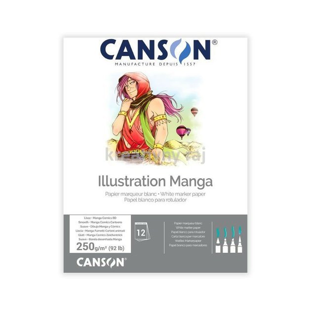 Ilustračný papier Canson® je vhodný pre všetky techniky kreslenia komiksov, manga a ilustrácií: ceruzka, atrament, lazúra, fixka, pierko, pero... Tento papier s hladkou štruktúrou je odolný voči poškriabaniu, lepiacej páske a zafarbeniu. Veľmi biely, umožňuje vynikajúci kontrast farieb a skenovanie.