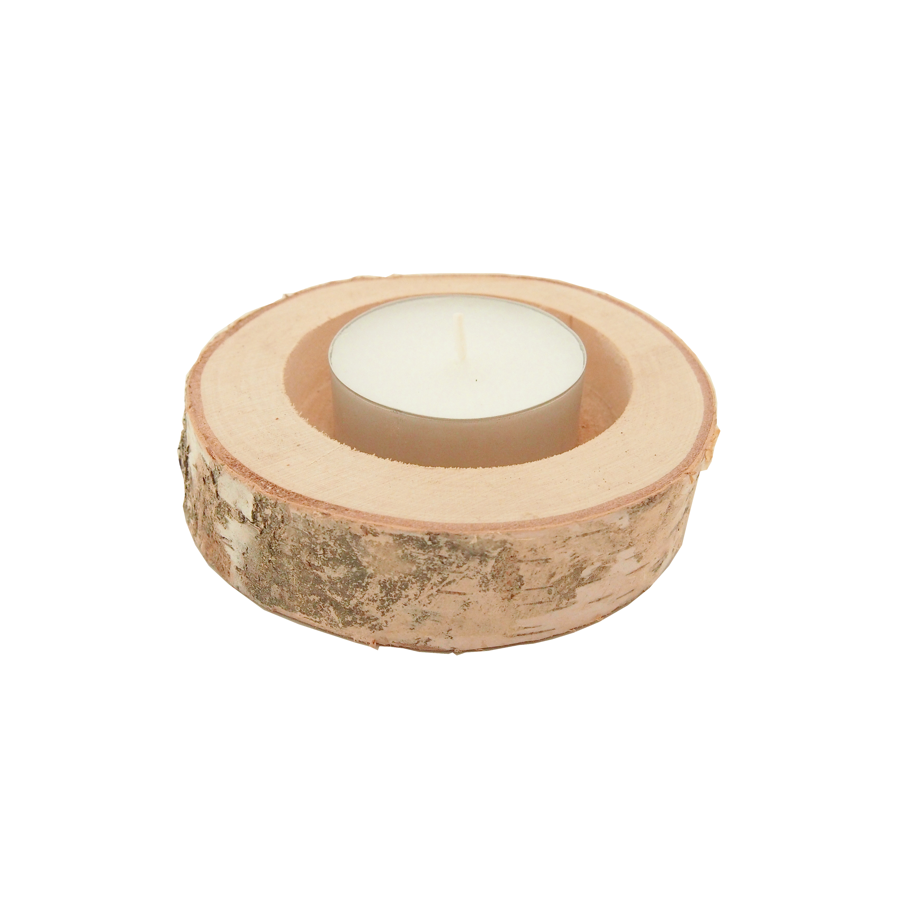 Svietnik na sviečku z prírodného, nefarbeného brezového dreva. Nádherné drievka nesmú chýbať v žiadnom aranžmáne. Rovnako krásne vyniknú aj pri zelenom ihličí. Vytvárať z nich môžete aj rôzne rámčeky, dekorácie, prívesky, ozdoby na stromček. Použite napr. akrylovú farbu, decoupage, nejakú peknú silikónovú pečiatku a podobné dekoračné techniky. S plátkom sa dá vytvoriť krásny aranžmán, napríklad s ihličím a sviečkami.