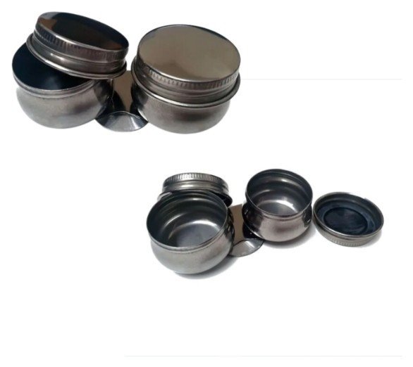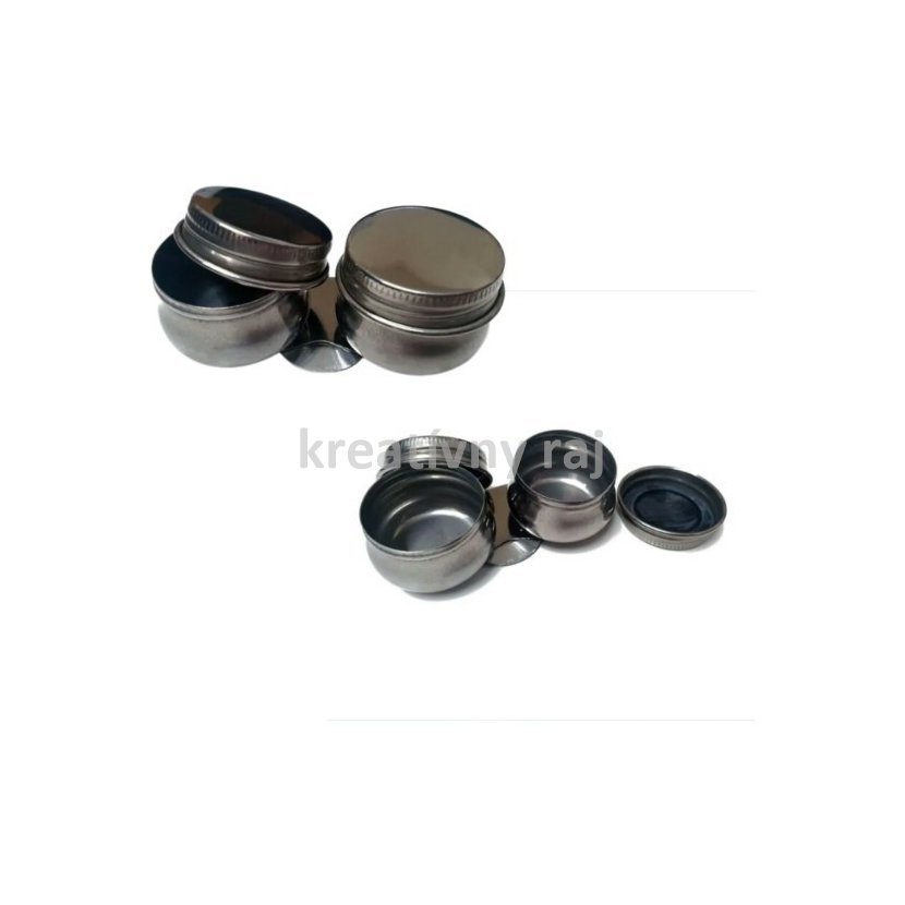 Kovová dvojitá miska s vekom. Navrhnuté na prichytenie na okraj palety na uskladnenie rozpúšťadiel a olejov počas maľovania. Priemer cca 35 mm. Oba misky sú pripevnené k jednej spone