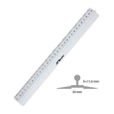 Pravítko hliníkové s úchytom LENIAR .Pravítko vyrobené z eloxovaného hliníka. Jednostranné metrické značenie v cm/mm. Rukoväť pre pohodlné držanie. Dĺžka pravítka je 50 cm. Balené v puzdre.