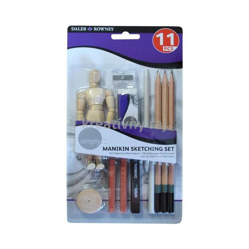 Sada na skicovanie Daler-Rowney s manekýnom od poprednej umeleckej značky Daler-Rowney. Sada je vhodná na skicovanie, kontúrovanie, kreslenie čiernobielých umeleckých diel, ktoré vynikajú svojou jednoduchosťou a precíznosťou. Je vhodná pre kreatívnu tvorbu detí od 8 rokov.