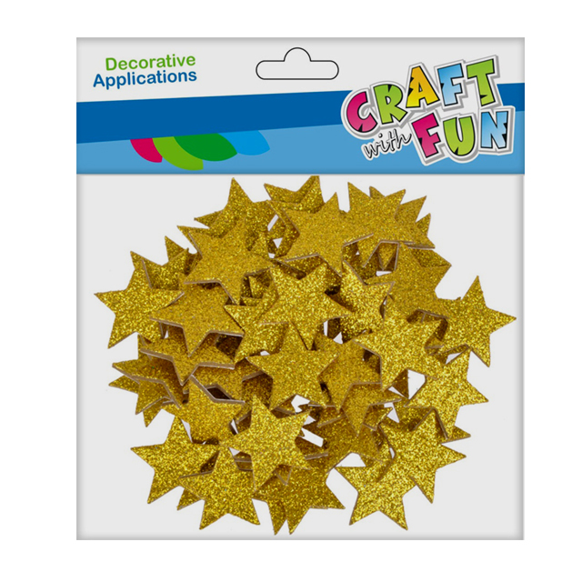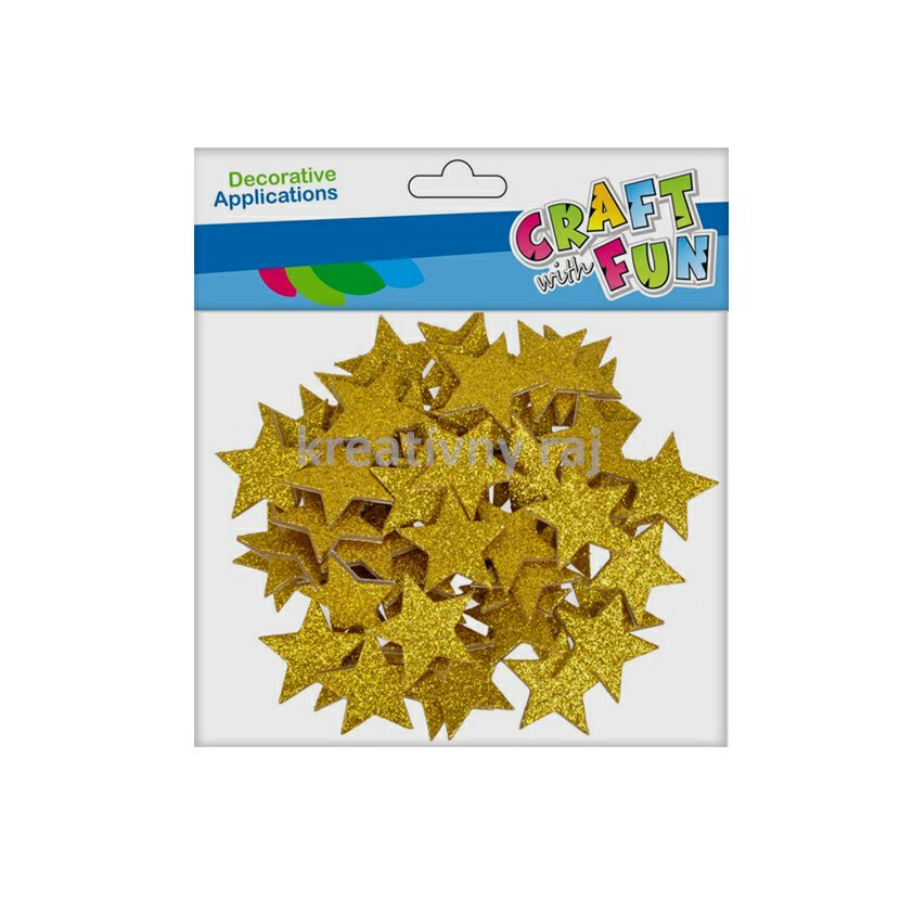 Balenie samolepiacich trblietavých hviezdičiek z machovej gumy pre tvorbu vianočných pozdravov, adventných kalendárov, párty doplnkov a iné.