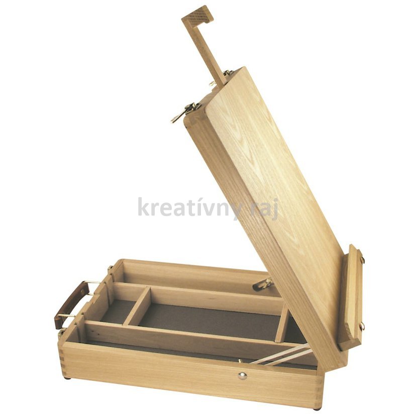 Stolový stojan Edinburgh je ľahký, prenosný a ľahko skladovateľný stojan z certifikovaného olejovaného bukového dreva. Je ideálny na použitie v malých priestoroch a s menšími plátnami, tabuľami s plátnom alebo skicármi. Stolový stojan Edinburgh má úložný priestor na úschovu maliarskych nástrojov, štetcov a farieb. Daler Rowney Simply Edinburg stolový stojan s kufríkom. Stolový maliarsky stojan EDINBURGH v prevedení drevený box použiteľný ako prenosný drevený kufrík. Váha: 1,2 kg Rozmery: 27x 38 x 85 cm. Maximálny rozmer plátna je 45 cm. Produkty radu Simply sú predovšetkým určené začiatočníkom a amatérskym umelcom. Napriek tomu si zachovávajú vysokú kvalitu a priaznivú cenu.